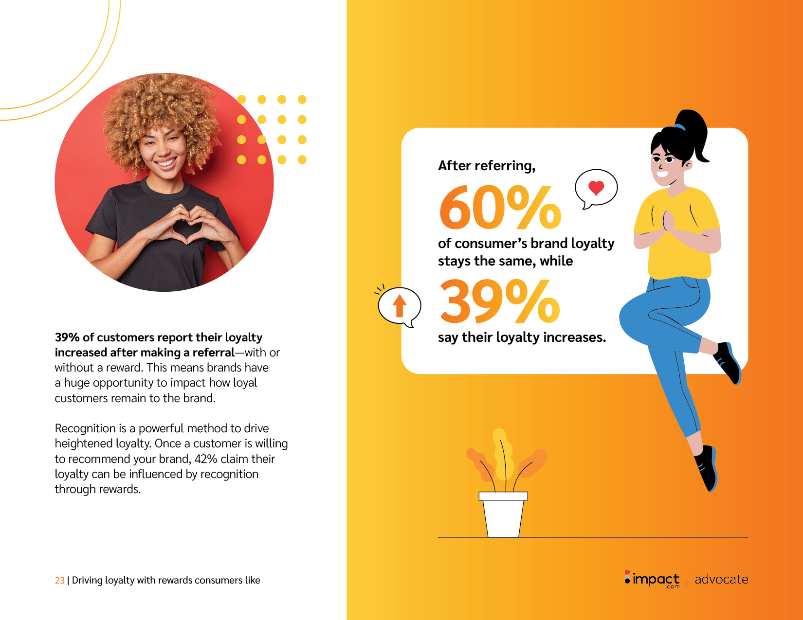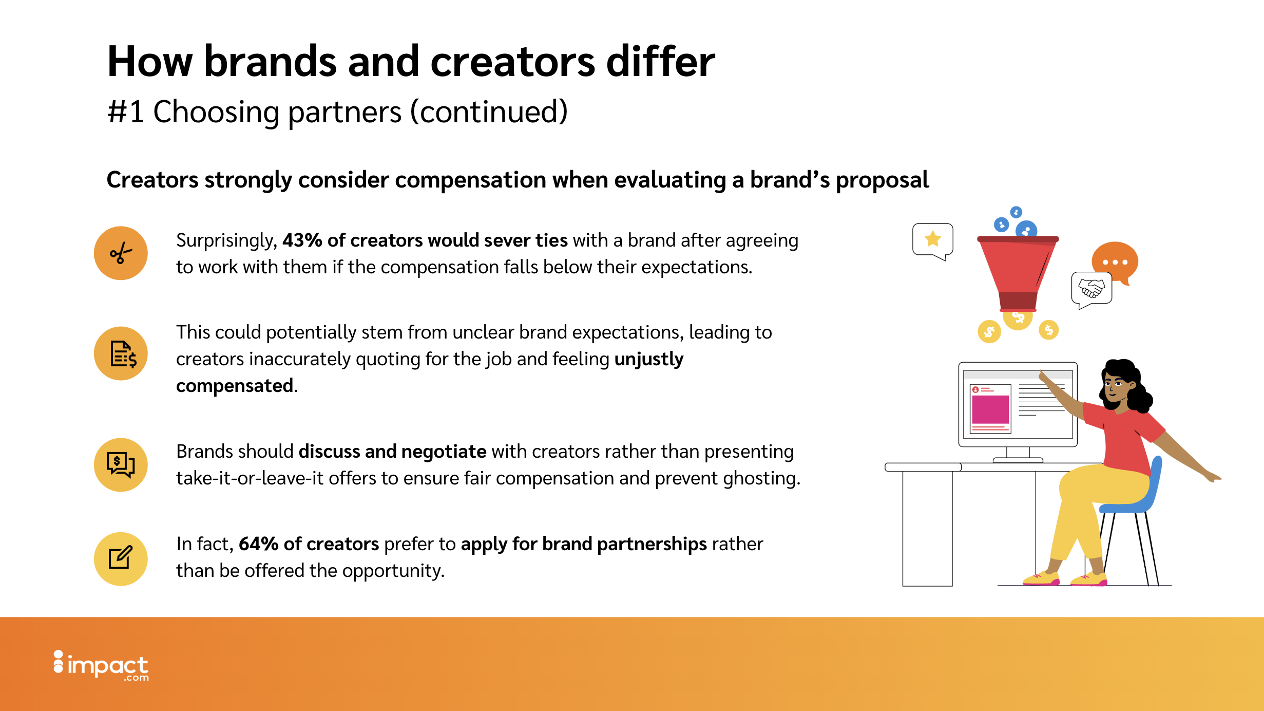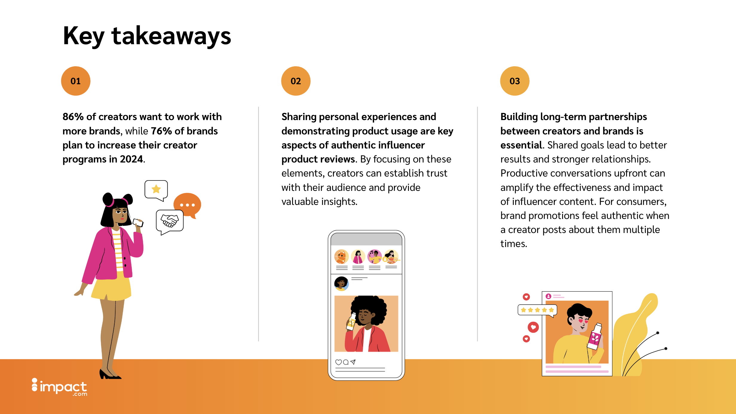 impact.com is a partnerships management platform. Working with the Content Director and the internal brand and marketing teams, I designed reports, decks, and campaign materials within an established brand system, translating complex data into clear visual communication.